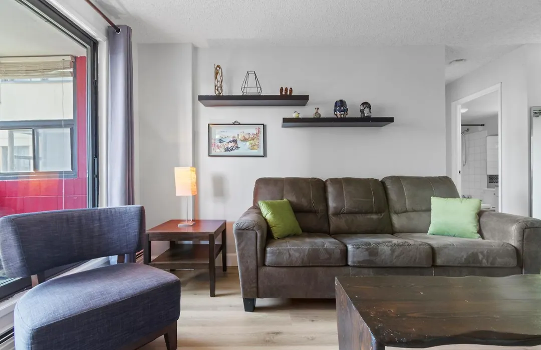 寝室1室のSuite Near Downtown, Bmo, Stampede, Free Parking カルガリーはカルガリーの中心に位置し、グレンボウ博物館から歩いてわずか9分です。 エルボー・リバー・カジノ数歩の距離に位置するこの65m²のアパートには、リラックスしながら庭園の景色を楽しめるテラスがあります。
